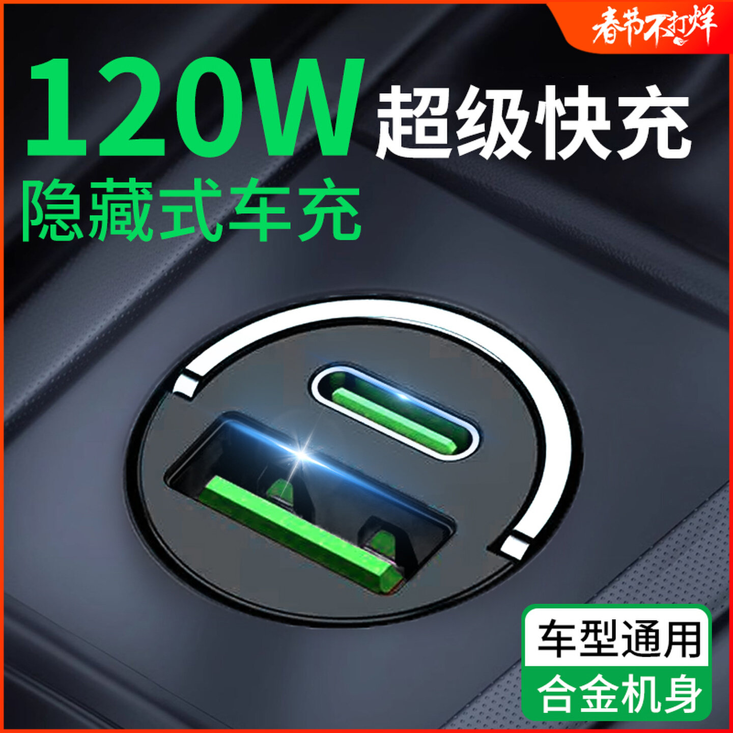 车载充电器超级快充手机一拖二隐形点烟器转换插头120w车充隐藏式